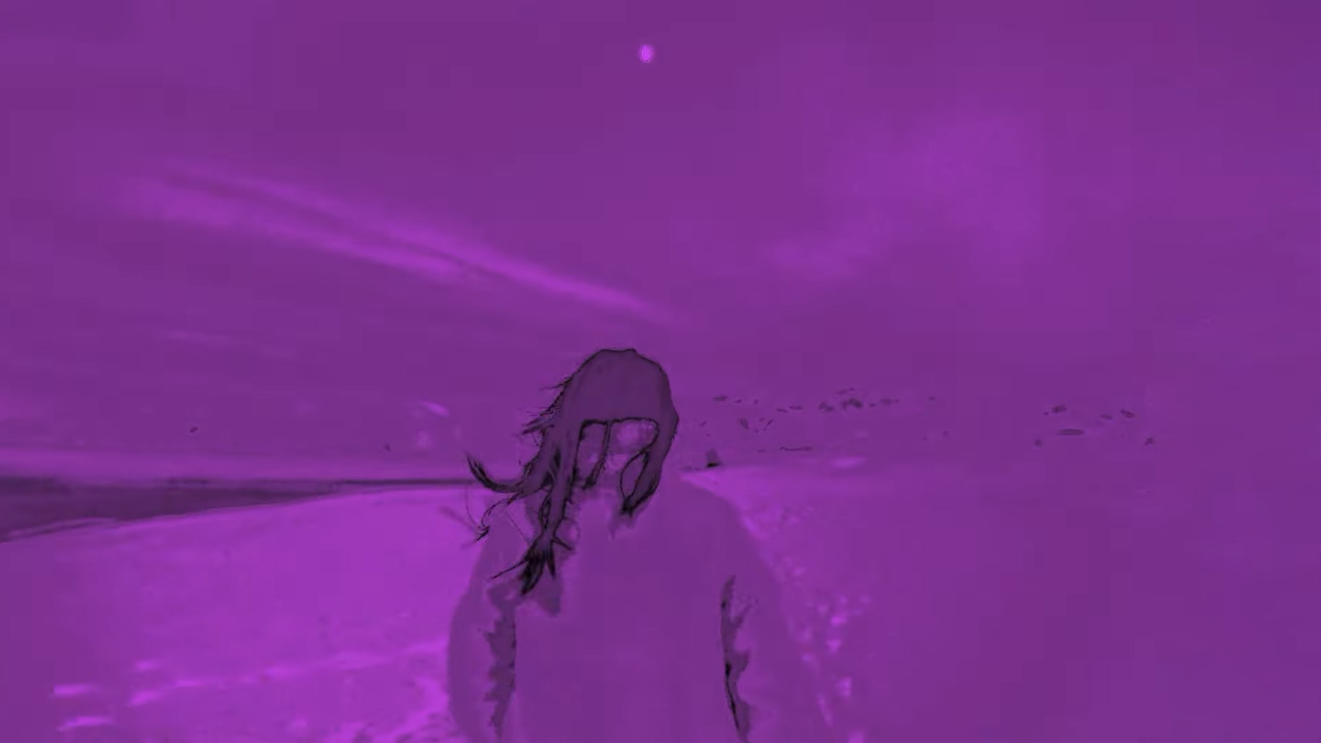 The video mirrors the intense purple hue of the artwork on recent choline’s releases, using a blown-out filter that washes over scenes that are both jarring and inspiring. Framed as a visual collage suspended within an amethyst haze of purpose, it’s uncannily suited for this moment, one where so many disparate events are bound together by the noxious rise of oppressive control. Intimate moments, like innocent coastline treks, play out alongside communal moments such as celebratory fireworks and the passage of a star-strewn sky, reflecting how the assault comes in moments both big and small–grand-scale invasions and also individual infiltrations. The line between technological advancement and totalitarian overreach has dissolved, leaving every moment heavy with that burden. And yet, as the video and song ultimately draw out, the catalyst for change is found just as easily in any single moment.
