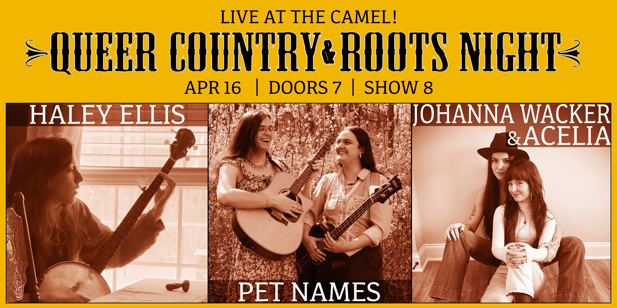 Queer Country & Roots Night feat. Johanna Wacker & Acelia, Pet Names, Haley Ellis @ The Camel – $12 (order tickets HERE)