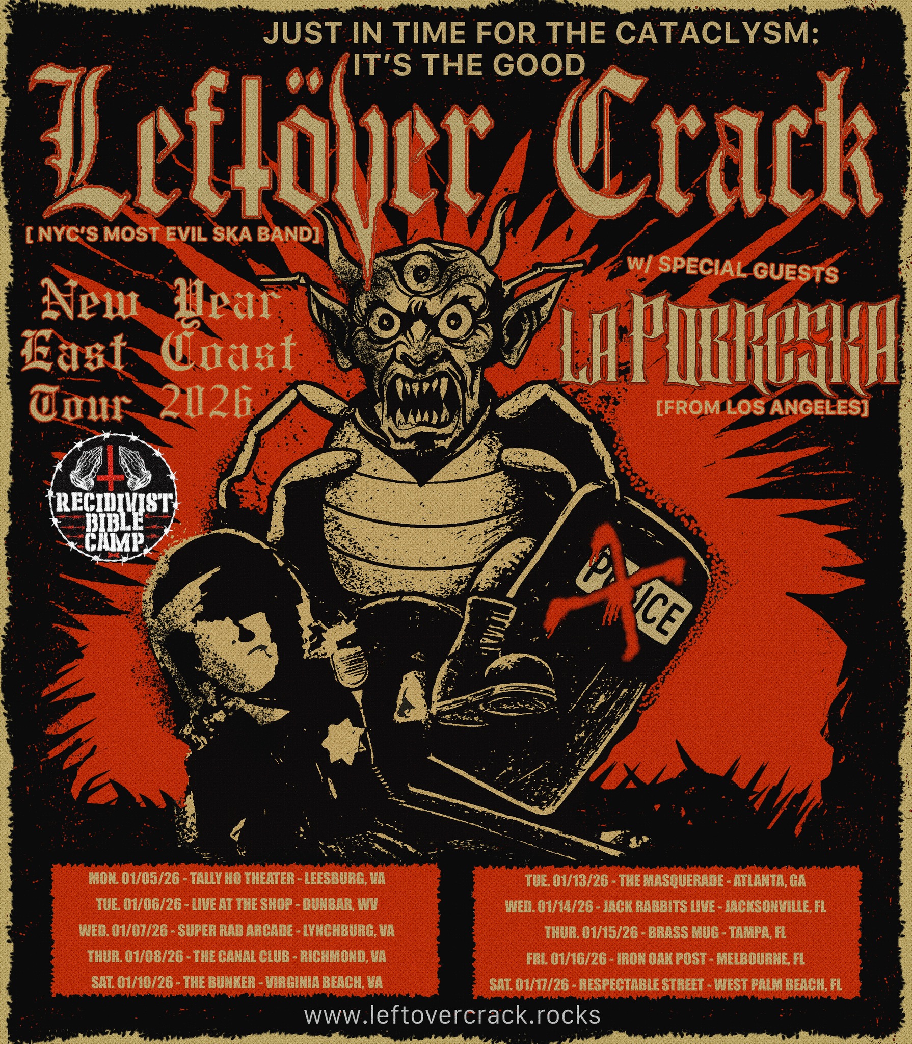 In punk rock circles, NYC group Leftover Crack is legendary. Formed in the wake of 90s ska-core band Choking Victim’s dissolution, Leftover Crack began as a vehicle for Choking Victim frontman Stza’s prolific songwriting urges. While the band retained ska elements, and occasionally broke out full-on ska songs, they were much more likely at any given moment to sound like raging old-school hardcore punk. Stza’s snotty, throaty vocals and the band’s metallic crunch added elements of crust punk, as did their tendency to sing about left-wing politics, drug use, and struggling to survive on the margins of society. Leftover Crack’s most active periods were in the early to mid 00s and the mid to late 10s, but their revolving-door lineup and Stza’s pursuit of other projects like Star Fucking Hipsters and Crack Rocksteady Seven has kept Leftover Crack in flux for most of the past decade. At some point during all of that, though, the band left Fat Wreck Chords, signing to California metallic hardcore label Tankcrimes.