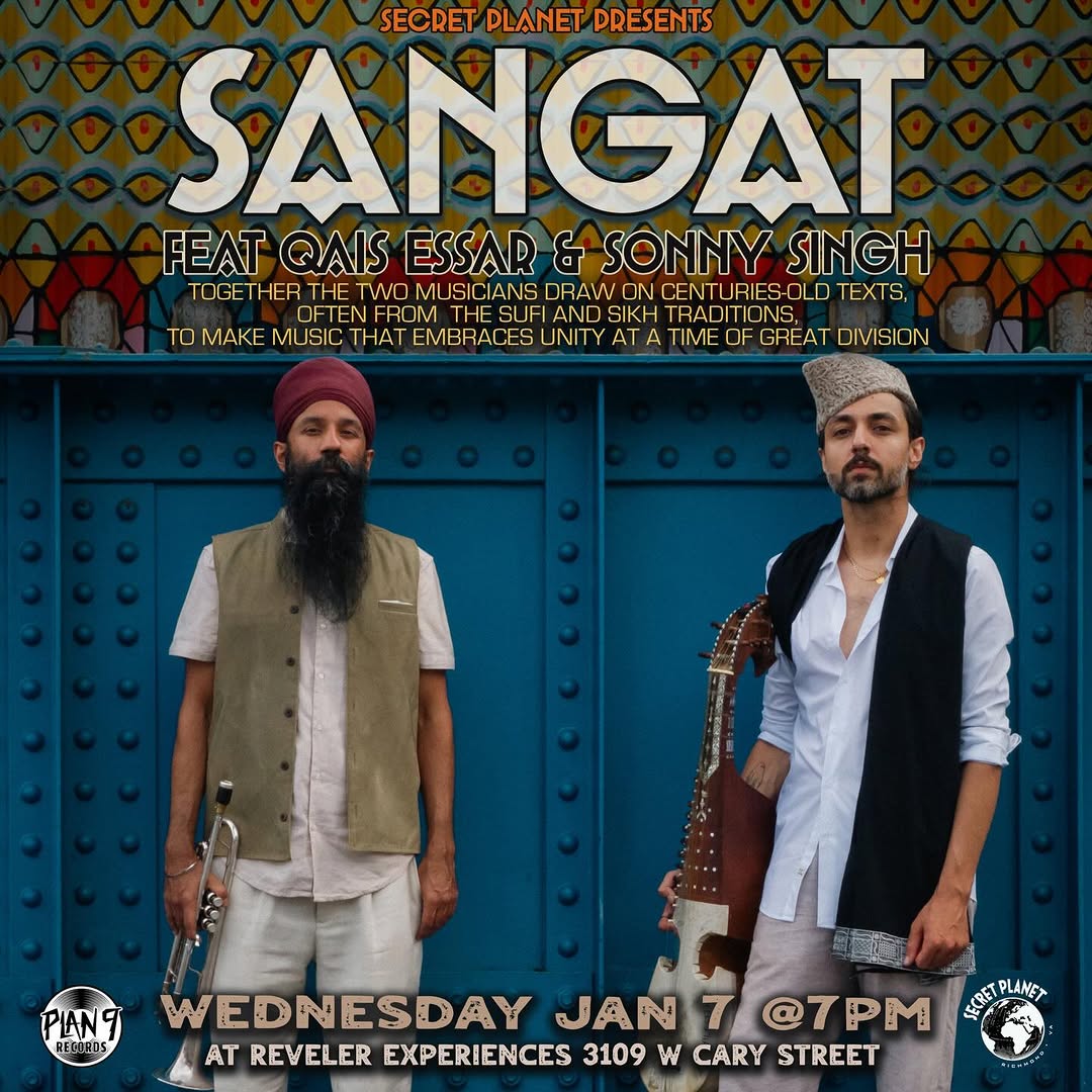 I’ve really appreciated both Reveler Experiences and Secret Planet for bringing a lot of music to Richmond in recent months that we haven’t previously had that many places to experience in a live environment. Secret Planet is particularly focused on international artists and styles, and that’s definitely what we have here as Afghan-American rabab player Qais Essar and Sikh-American trumpeter Sonny Singh have joined together to create Sangat, a project devoted to mixing together the poetic and musical traditions of Sikh and Sufi communities in order to create new sounds and demonstrate the need for connection at a time when division seems to be on the rise throughout the world. Sangat is actually the name of the first collaborative album by Essar and Singh, which was released this fall and showcases some lovely melodies that are soothing and beautiful, intertwining Singh’s trumpet and Essar’s rabab with beautiful vocal lines.