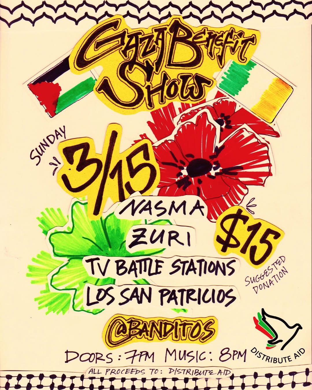 Gaza Benefit Show, feat. Nasma, Zuri, TV Battle Stations, Los San Patricios @ Bandito’s – $15 (order tickets HERE)
