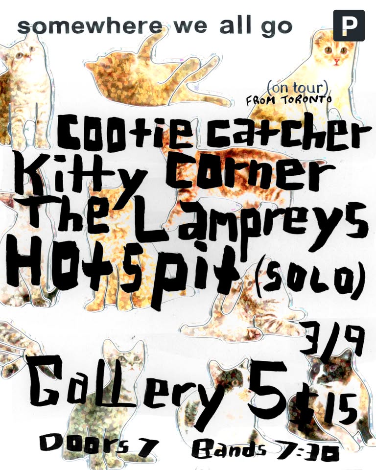 Cootie Catcher, Kitty Corner, The Lampreys, Hotspit @ Gallery 5 – $15 (order tickets HERE)