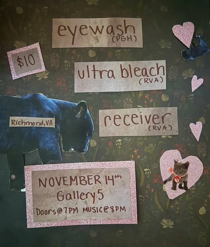 Eyewash, Ultra Bleach, Receiver @ Gallery 5 – $10 (order tickets HERE)