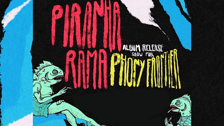 Here’s something I learned from my days playing in bands: the larger your lineup, the harder it is to keep the band together. Adding a second guitarist is all very well, but it might throw serious complications into the schedule. The biggest band I was ever in had five members, and it was incredibly difficult to make sure we were all available for practice, let alone shows. And tours? Don’t get me started. I used to see nine-member ska bands with huge horn sections and wonder how in the world they managed. Piranha Rama don’t play ska, but they fluctuate somewhere around the nine-member mark at all times, and seem to have at least that many people involved in the creation of their brand new fourth album, Phony Frontier. And yet somehow they carry on, not only surviving but thriving with that enormous lineup. Indeed, it is if anything one of their biggest strengths — something that’s very obvious once you listen to their brand new record.