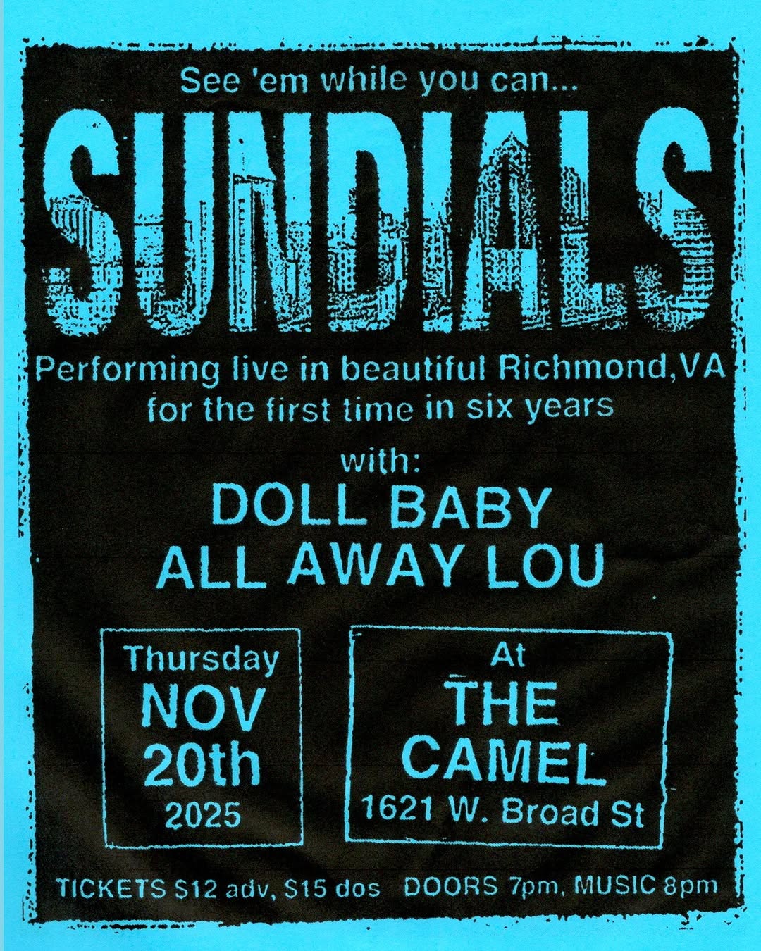 Sundials, Doll Baby, All Away Lou @ The Camel – $12 in advance, $15 day of show (order tickets HERE)