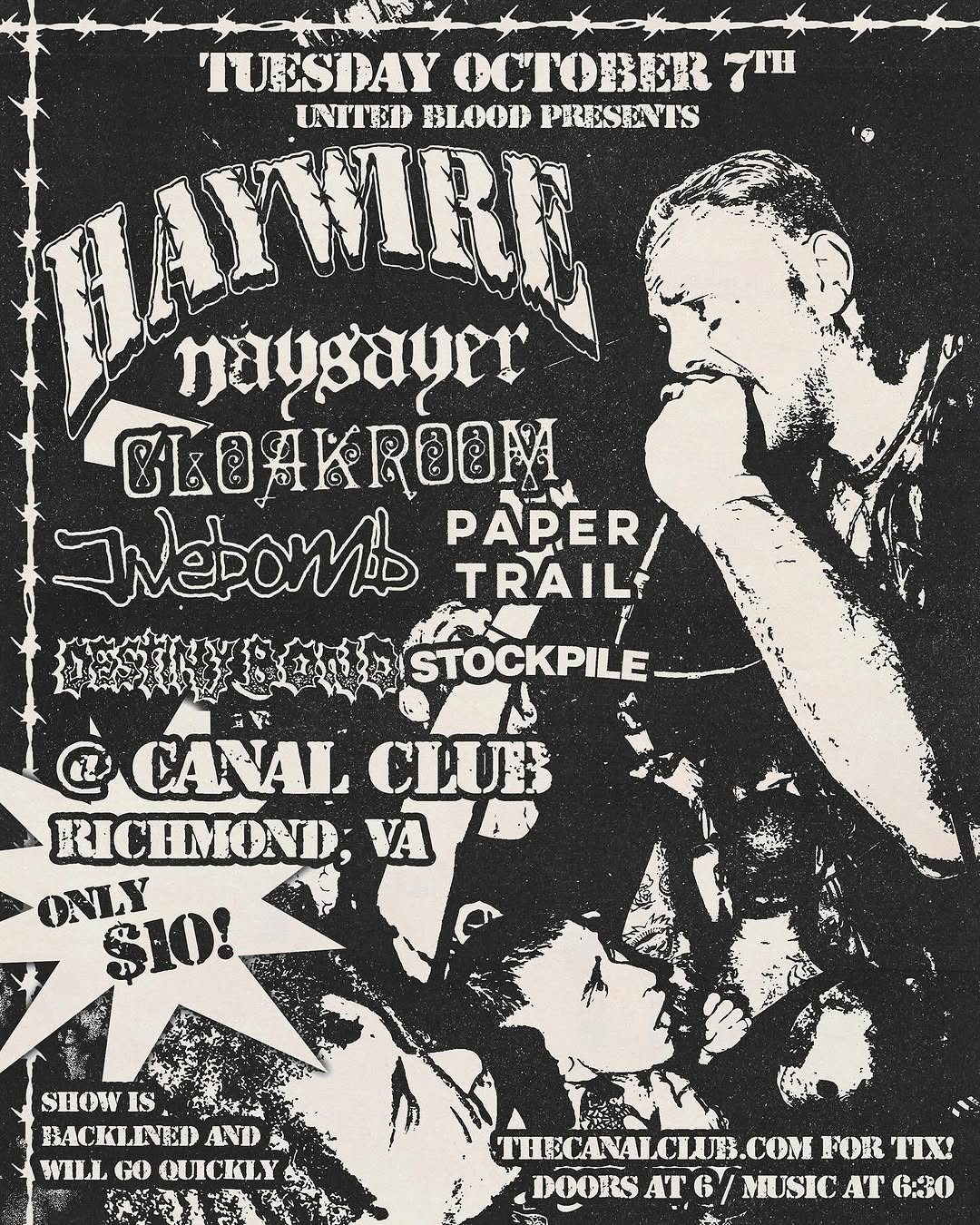 Haywire, Naysayer, Cloakroom, Jivebomb, Destiny Bond, Stockpile, Paper Trail @ The Canal Club – $1o (order tickets HERE)