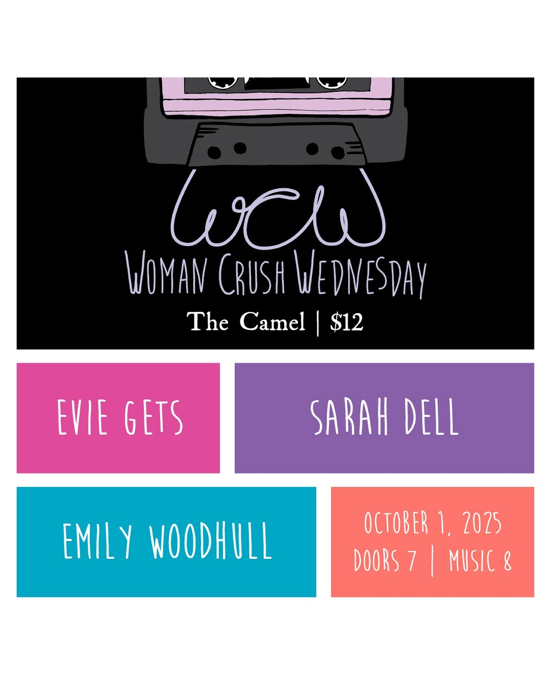 Woman Crush Wednesday, feat. Evie Gets, Sarah Dell, Emily Woodhull @ The Camel – $12 (order tickets HERE)